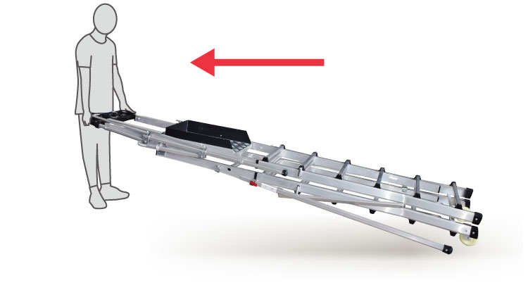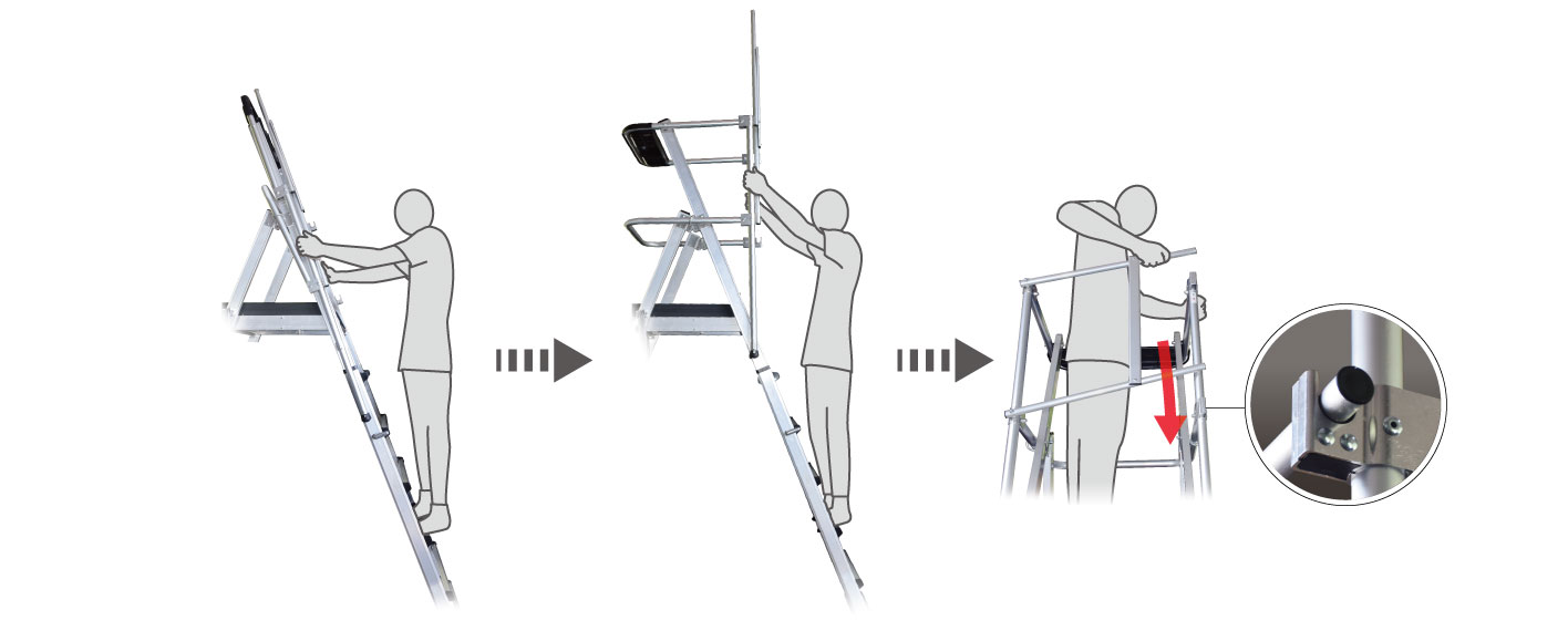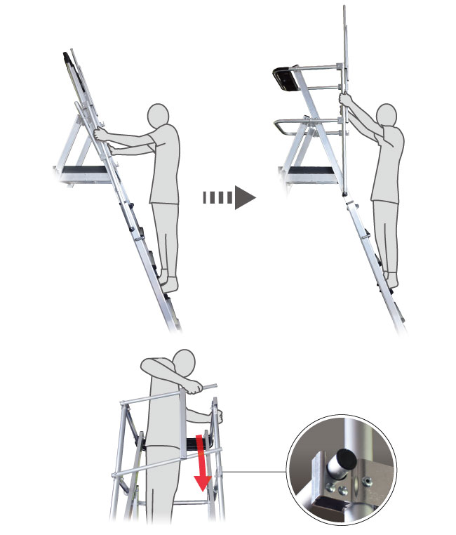 輕鬆拉起護欄,登上平台後再由上往下闔門
